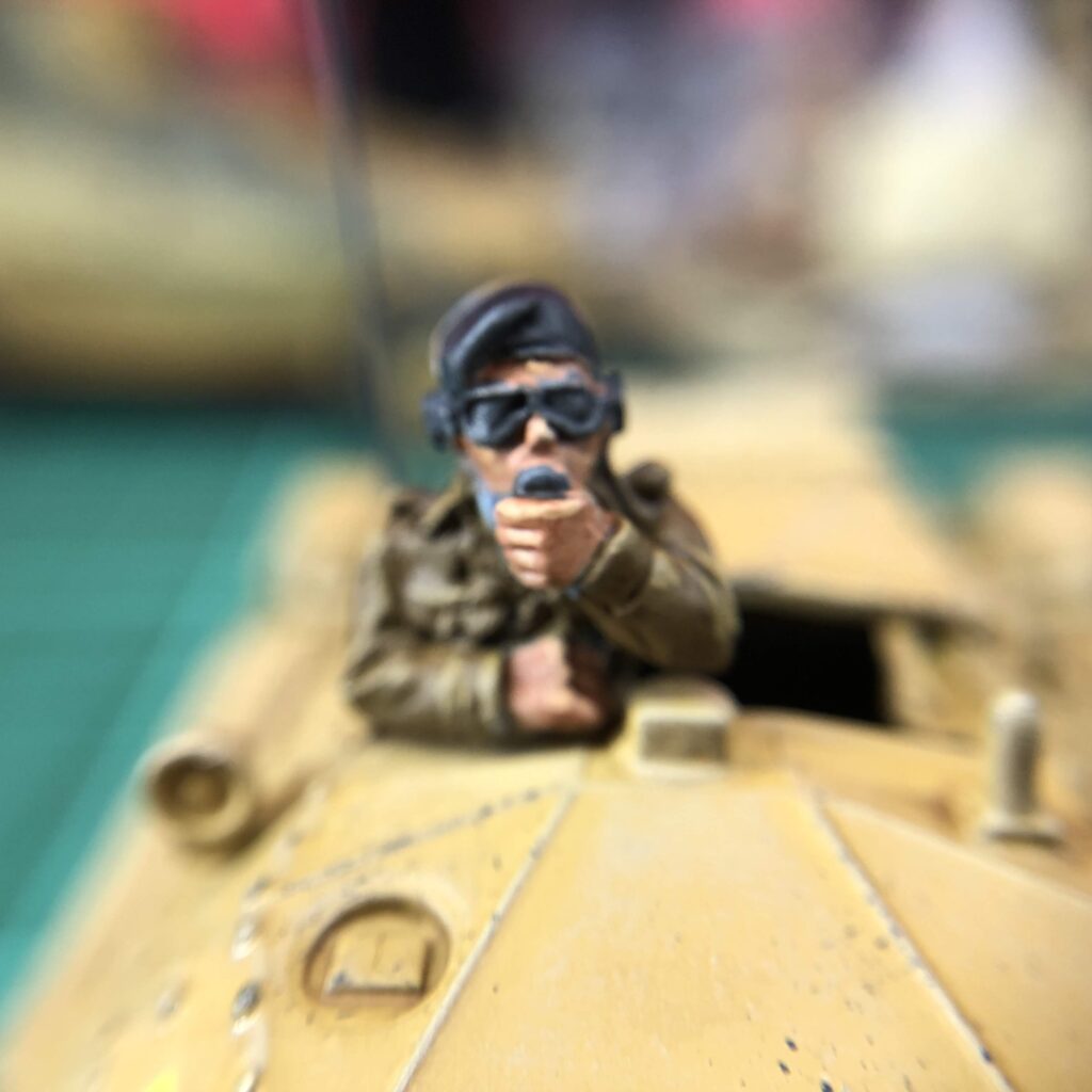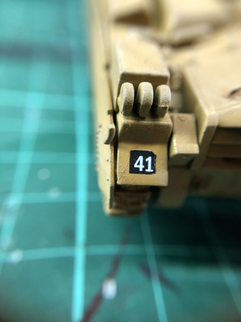 With decals applied and the vehicle weathered I attached the antenna and put in the (already painted) commander then gave the whole vehicle a spray of Model Master Lusterless Lacquer.